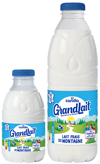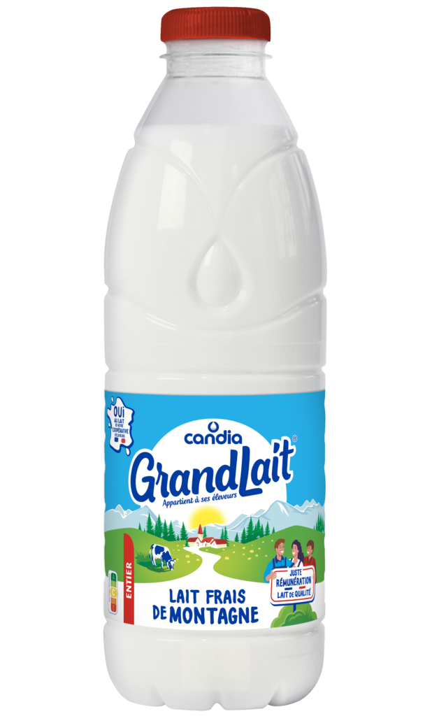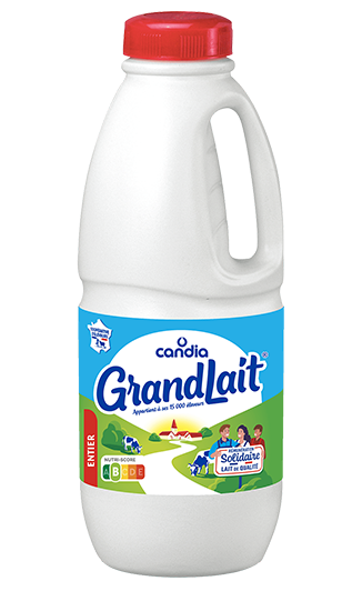 GrandLait entier de Candia est un lait 100% français. Issu de la plus grande coopérative laitière de France et garantit une juste rémunération à ses éleveurs .
