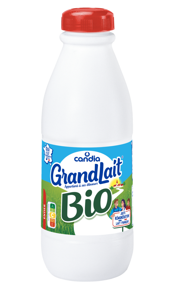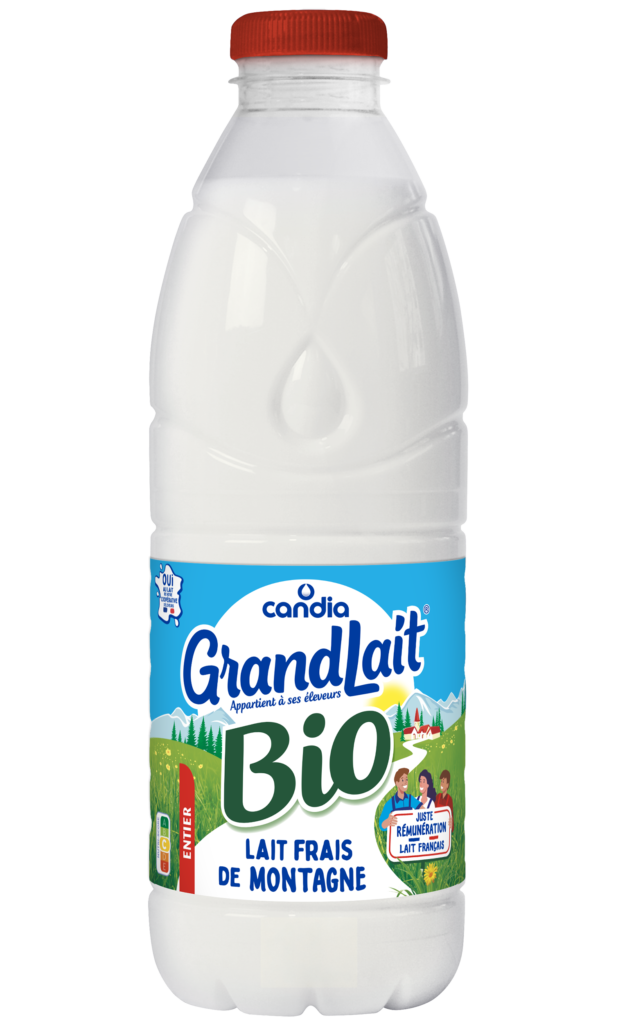 GrandLait BIO entier de Candia est un lait BIO 100% français. Issu de la plus grande coopérative laitière de France, il garantit une juste rémunération à ses éleveurs.