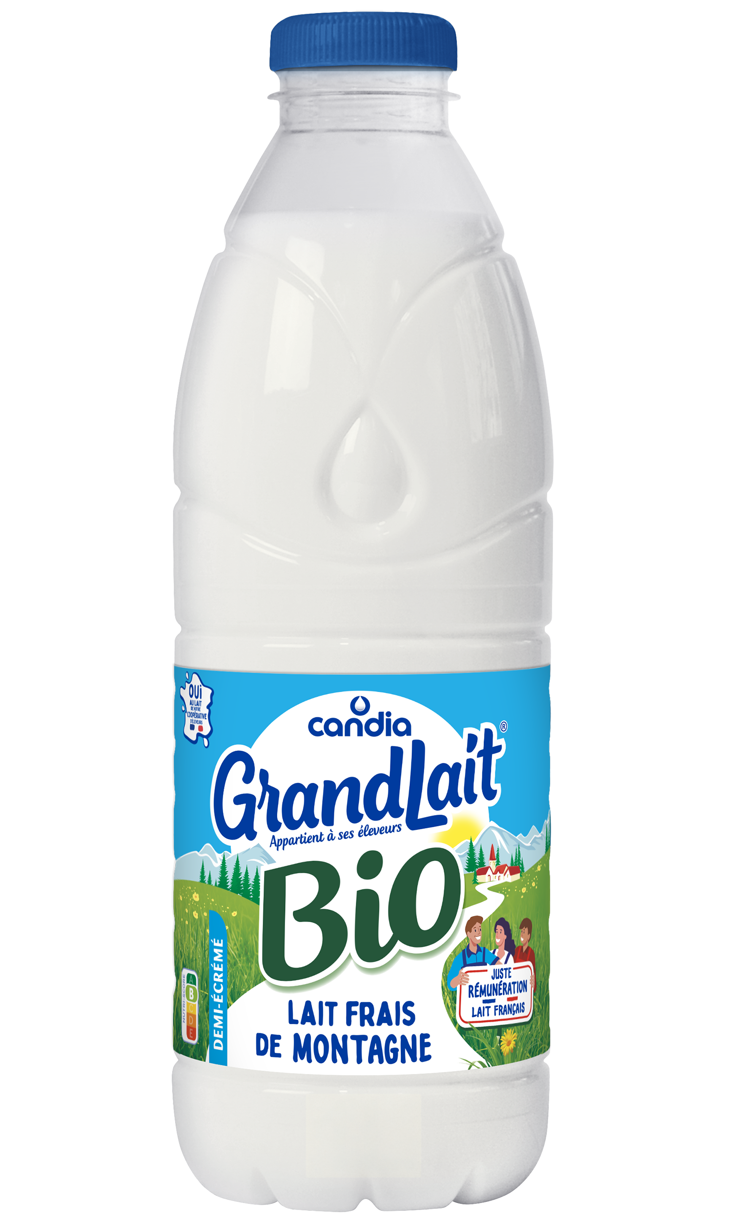GrandLait Frais de Montagne BIO entier est un lait BIO 100% français. Il provient de fermes situées en zone de montagne, adhérentes à la plus grande coopérative laitière de France, leur garantissant une juste rémunération.